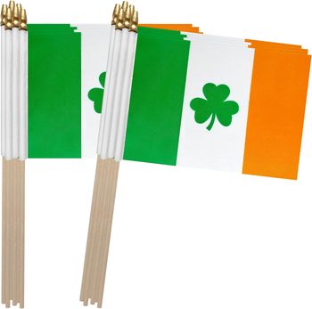 Mini drapeau 5*8 en polyester de haute qualité tenant le drapeau irlandais agitant avec poteau en bois